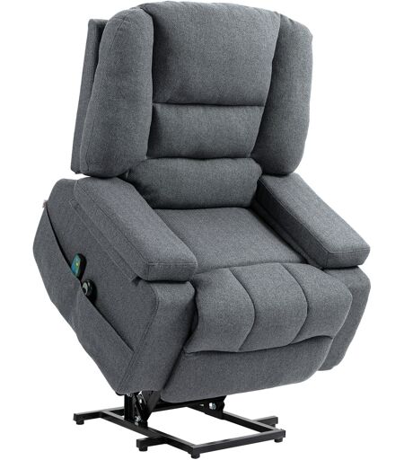 Homcom Poltrona Alzapersona Reclinabile con 8 Punti Massaggianti, in Tessuto Effetto Lino, 97x90x102 cm, Grigio