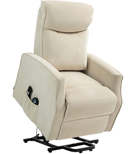 Homcom Poltrona Relax Alzapersona con 8 Punti Massaggio, Reclinazione a 135° e 2 Telecomandi, Crema