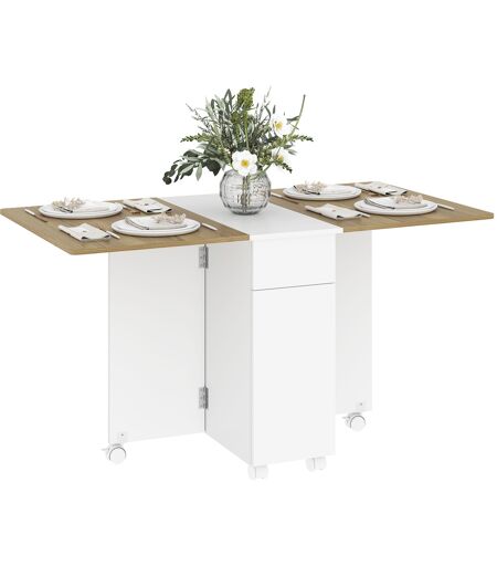 Scegli il tavolo richiudibile salvaspazio HOMCOM ideale per spazi ridotti. Realizzato con un design espandibile, in cui entrambi i lati si sollevano dal fondo per fornire una superficie extra per un massimo di 6 persone, mentre si abbassa in un'unità compatta e piccola. I 2 cassetti e l'armadietto consentono di riporre ordinatamente il materiale, mentre 6 ruote con 2 freni permettono di spostarlo e di reggerlo senza problemi. Il piano d'appoggio in melamina liscia consente di pulirlo facilmente. ...