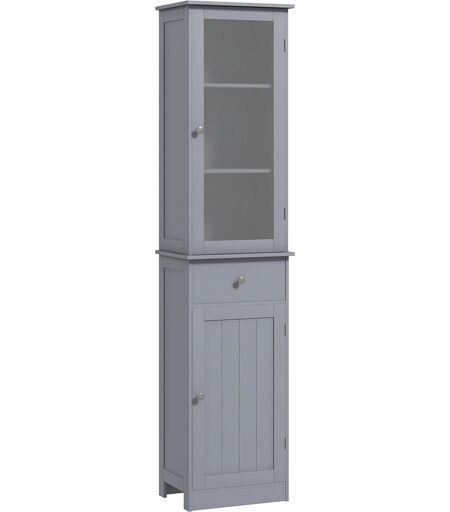Kleankin Mobile Colonna Bagno Salvaspazio con Armadietto Cassetto e Ripiani in MDF 40x27x1715cm Grigio Aosom