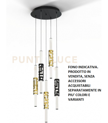 Sikrea Kira-S5 Sospensione 5 Luci Tonda Nero Opaco Diffusori Bianco , A Led Dimmerab...