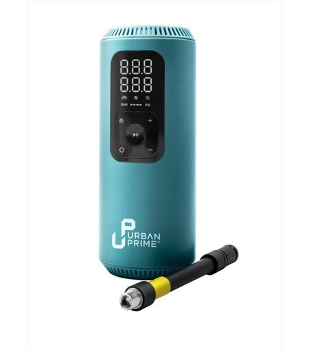 Compressore elettrico portatile per bici, monopattini, moto, oggetti gonfiabili - 150 PSI/10.3 BAR – 2x1.200 mAh - Tempo di ricarica 2-3 ore – Batteria al litio – Ricarica USB - Autostop - Illuminazione LED - 3 modalità di gonfiaggio – Schermo LCD – Valvola Presta e Schrader - Il compressore elettrico di Urban Prime è comodo e pratico, occupa poco spazio, così puoi portarlo sempre con te. Il tubo dopo ogni utilizzo può essere poi riposto comodamente nel suo tubo di alloggiamento. Dotato di luce LED consente di eseguire rapidamente la manutenzione su strade anche in condizioni di buio. Utile in caso di emergenza come segnalatore di presenza. Con la funzione Autostop, basta selezionare la modalità desiderata e il compressore si attiverà e interromperà automaticamente al raggiungimento della pressione di gonfiaggio corretta. Ideale per gonfiare senza preoccupazioni e senza margine di errore ...