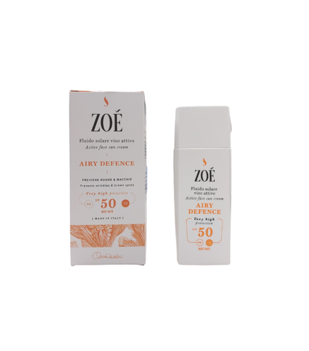 zoe cosmetics Airy Defence Crema Viso Solare 50 + Antimacchia e Antirughe