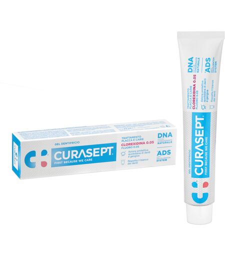 CURASEPT ADS DNA TRATTAMENTO PLACCA E CARIE - Gel Dentifricio - Clorexidina 0,05 con ADS e Fluoro 0,05 - Descrizione Azione protettiva quotidiana di denti e gengive. Rispetta il bianco dei denti. È consigliato l'uso sinergico in abbinamento al collutorio Curasept 0,05 Trattamento Placca e Carie. Co… ...