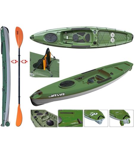 Tahe - Bic Sport Canoa Rigida Java Pack Fishing 112843 + Pagaia Touring-1 Fissa + Schienalino Standard Tahe / Bic Sport