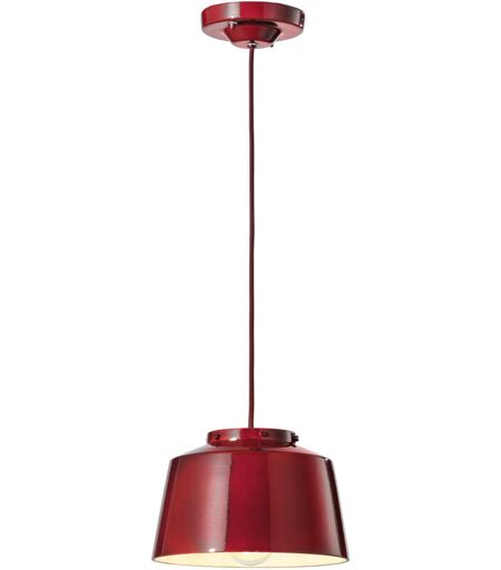 FERROLUCE - Lampadario Vintage 50'S Ferro e Ceramica Bordeoux 1 Luce E27 23Cm
