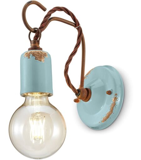 FERROLUCE Applique Vintage Ceramica Azzurra Con Filamento 1 Luce E27