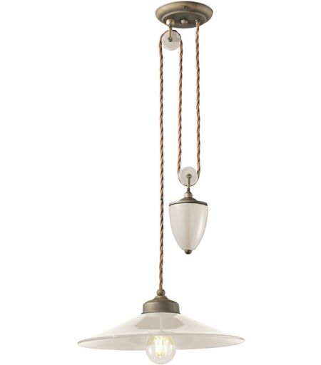 FERROLUCE Lampadario Vintage Colors Saliscendi Ferro e Ceramica Crema 1 Luce E27