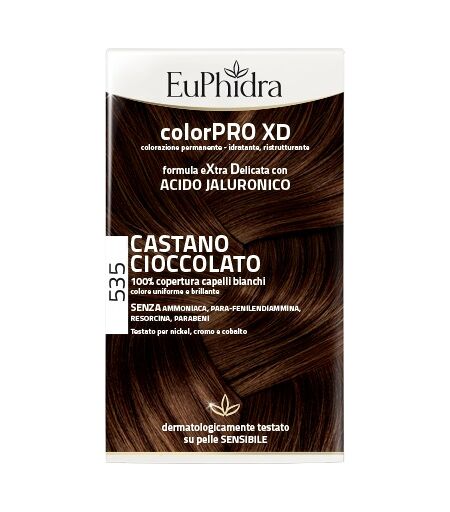 EuPhidra colorPRO XD 535 CASTANO CIOCCOLATO Descrizione Colorazione permanente per capelli con formula extra delicata. Più prestazioni: l'acido ialuronico penetra nella fibra capillare e agisce dall'interno aumentando idratazione, lucentezza, morbidezza. Privo di resorcina, parabeni, ammoniaca ...