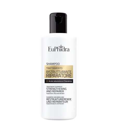 EuPhidra SHAMPOO TRATTAMENTO RISTRUTTURANTE RIPARATORE Descrizione Formula delicata con acido ialuronico e aminoacidi di cheratina per ridare nuova vitalità , vigore e luce ai capelli trattati da colorazioni e sfibrati da trattamenti (permanenti, stirature chimiche, utilizzo di piastra e ph ...