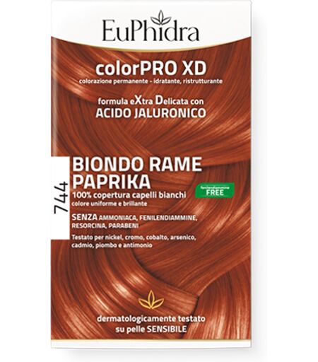ColorPRO XD - Biondo Rame Paprika 744 - Descrizione Colorazione permanente per capelli con formula extra delicata: senza ammoniaca senza resorcina senza parabeni. L'acido jaluronico penetra nella fibra capillare e agisce dall'interno aumentando idratazione lucentezza morbidezza. Più sicurezza: … ...