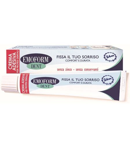EMOFORM DENT - Descrizione Crema adesiva per protesi dentali. Garantisce tenuta rapida, sicura e duratura delladentiera. Impedisce le infiltrazioni di cibo tra protesi e gengive, prevenendoirritazioni ed alitosi, per una bocca sempre fresca e pulita. Protegge da infiammazioni edolore a palato e gen… ...