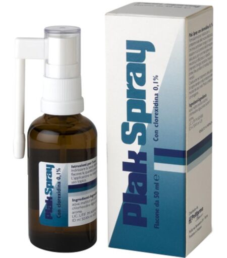 Plak Spray - Disinfettante del cavo orale nelle situazioni di igiene orale difficoltosa o impedita (piccoli interventi chirurgici, estrazioni, etc...). Ha un gradevole sapore di menta. Componenti Clorexidina (0,1%). Formato Spray da 50 ml. Cod. 4023336 ...