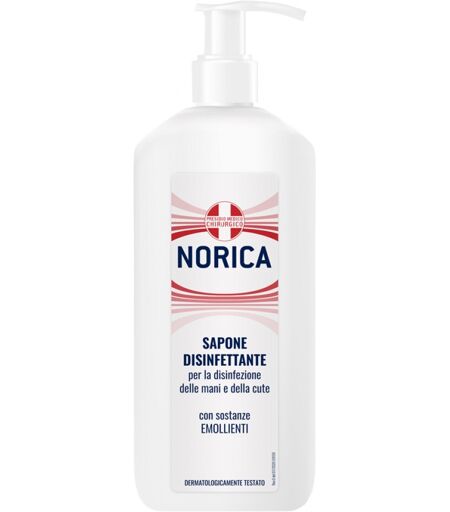 Norica Sapone Disinfettante Antisettico 500mlAntisettico Liquido Disinfettante Mani Descrizione Antisettico liquido per la disinfezione delle mani e della cute delicatamente profumato. Grazie alle sostanze emollienti c ...