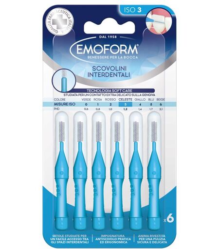 Polifarma Benessere Srl Emoform Scovolini Interdentali Iso 3 6 Pezzi - Scovolini Ergonomici per Pulizia Interdentale, Soft Care
