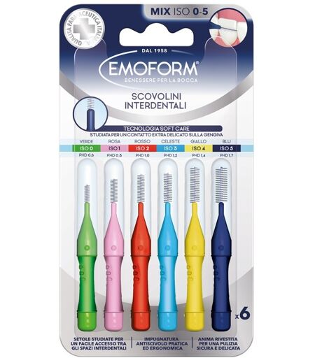 Polifarma Benessere Srl Emoform Scovolini Interdentali Iso Mix 0-5 6 Pezzi - Set Completo per una Pulizia Interdentale Efficace