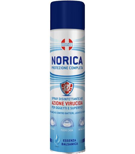 NORICA - PROTEZIONE COMPLETA - ESSENZA BALSAMICA - Descrizione Spray disinfettante ad azione virucida per oggetti e superfici. - Componenti Etanolo butano propano isobutano glicole dipropilenico dowanol dpm - metiletere - metildipropilenglicole pino mugo eucalipto quaternary ammonium compou… ...