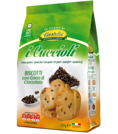 IL FORNO DI FARABELLA - I CUCCIOLI con Gocce di Cioccolato - Descrizione Biscotti con gocce di cioccolato. Senza glutine, specificamente formulati per celiaci. Ingredienti Amido di mais, olio di girasole, zucchero, gocce di cioccolato fondente (7,9%), farina di mais, farina di riso diastasata, pann… ...