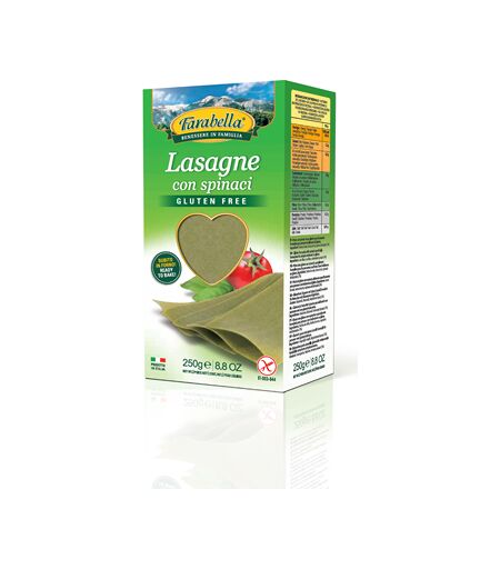 Farabella Lasagne con spinaci Descrizione Lasagne con spinaci senza glutine. Ingredienti Farina di mais, farina di riso, granetta di spinaci (2%). Senza glutine. Caratteristiche nutrizionali Valori medi per 100 g Energia 1.494 kJ/357 kcal Proteine (Nx6,25) 7 g Grassi di cui acidi grassi saturi 1,2 g 0,2 g Carboidrati di cui zuccheri 78 g 2 g Fibra alimentare 3,3 g Sale 0 g Conservazione Conservare a temperatura ambiente. Termine ultimo di conservazione dalla data di produzione, in confezione integra: 36 mesi. Formato Peso netto: 250 g. Cod. 488 ...
