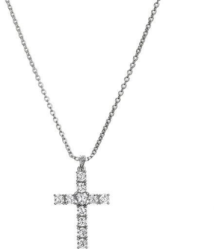 Ciondolo a forma di croce in ottone con zirconi sintetici, 42+8cm.Genere: Donna.Famiglia: Ciondolo.Materiale bracciale: Ottone.Colore quadrante: Argento.Chiusura: No. ...