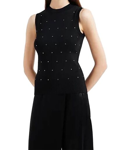 Armani Exchange maglietta a maniche corte in maglia a coste in misto viscosa con applicazioni di borchie a contrasto sul davanti.Materiale:63% Viscosa 37% Poliammide. ...