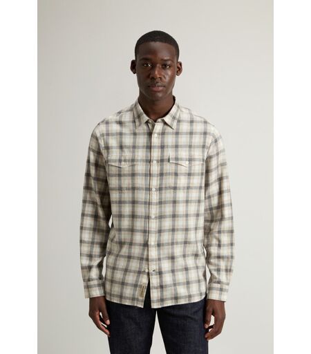 Woolrich Uomo Camicia in flanella di puro cotone Madras Beige Taglia S