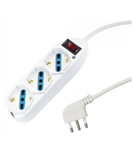EXTRASTAR - Multipresa Ciabatta Elettrica Cavo 3M Con 3 Posti Prese Universale 10/16A Schuko e Interruttore Spina 10A Laterale Bianco