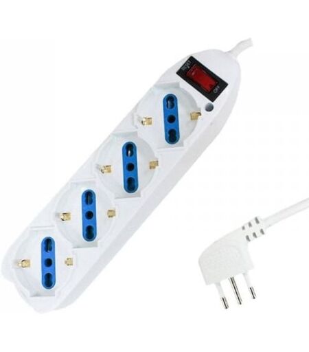 EXTRASTAR Multipresa Ciabatta Elettrica Cavo 3M Con 4 Posti Prese Universale 10/16A Schuko e Interruttore Spina 10A Laterale Bianco