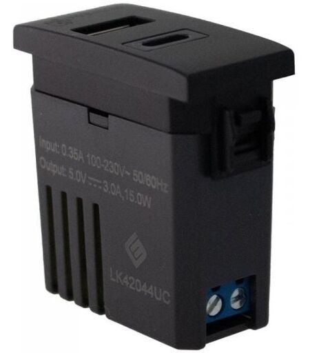 EXTRASTAR Modulo Presa Caricatore USB 5V 3A USB-A + USB-C Colore Nero Compatibile Con Bticino Living e Vimar Plana