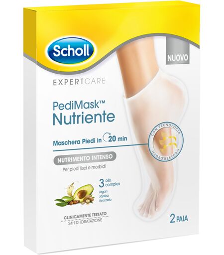 Scholl - PediMask Nutriente - Descrizione Maschera per piedi in calzini idratanti di Scholl. La calza aiuta l'assorbimento della crema durante il trattamento, per ottenere risultati ed un effetto nutriente. contiene ingredienti rigeneranti come il pantenolo e il burro di karitè. Senza profumi e col… ...