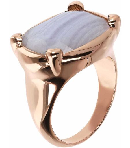 Anello Da Donna Chevalier Di Bronzallure Della Collezione Felicia. Realizzato In Lega Golden Rosé, Placcata Oro Rosa 18kt, Impreziosito Da Una Pietra Naturale Sfaccettata, Agata Celeste, Dalla Forma Rettangolare. Lega Brevettata Golden Rosé Designed And ...