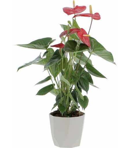 KENTIS Anthurium Andreanum Rosso con Eco-Vaso Grigio - Pianta Purifica Aria - h 65-75 cm Vaso ø 17 cm