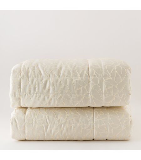 Trapunta jacquard Verny La trapunta Verny è un inno alla grazia dei paesaggi francesi. Il motivo jacquard che la attraversa richiama la delicatezza dei giardini rigogliosi, regalando al tessuto una luce che muta con lo sguardo. Il retro in madapolam 100% cotone offre traspirabilità e morbidezza naturale, mentre l’imbottitura da 350 gr/m² assicura calore leggero e avvolgente. La trapuntatura a capo con doppi quadri, arricchita da cornici e angoli tondi, testimonia la precisione sartoriale e la qualità del capo. Con le dimensioni di 260x270 cm, veste il letto con imponenza e raffinatezza. Disponibile nelle varianti Sabbia e Ottanio, la trapunta Verny non si limita a scaldare: è una creazione che trasforma la camera in un rifugio di eleganza poetica e qualità durevole. ...