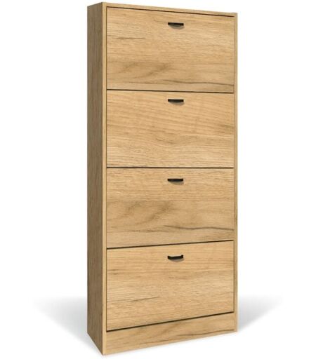 EACOMMERCE Scarpiera in Legno 4 Ante colore ROVERE NODATO Mobiletto 24 Paia 63x24x150H cm (CD102-RN) 4 Ante - 63x24x150H cm Rovere Nodato