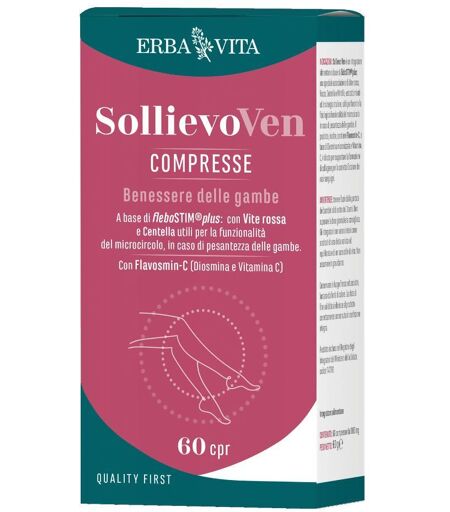Sollievo Ven - Descrizione Integratore alimentare a base di fleboSTIM plus, una speciale associazione di vite rossa, rusco, centella e mirtillo, estratti mirati ed in sinergia tra loro, utili per favorire la fisiologica funzionalità del microcircolo in caso di pesantezza delle gambe. Il prodotto, i… ...