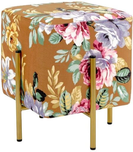 BARONI HOME Pouf Poggiapiedi Quadrato in Velluto, Pouf da Salotto Imbottito, Pouf Panchetto per Camera da Letto, Fiori Base Cognac, 33x33x38 cm -
