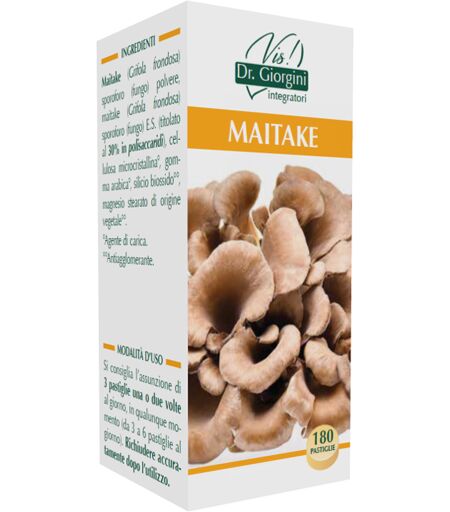 MAITAKE - Descrizione Integratore alimentare a base di maitake che favorisce le naturali difese dell'organismo. Prodotto adatto ai vegani. 100% naturale. Non contiene conservanti coloranti aromi ed edulcoranti di sintesi. Ingredienti Maitake (Grifola frondosa) sporoforo (fungo) polvere maitake (… ...