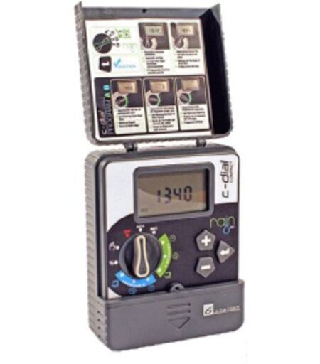 Rain C-Dial Centralina per irrigazione Caratteristiche: -Con programmazione della partenza. -Modello con trasformatore esterno. -Durata e frequenza. -Funzionamento a batteria 2AAx1,5v (non Incluse). -Con trasformatore esterno. -Ampio display facile programmazione con selettore e simboli. -Schermo Lcd. -Tempi d'irrigazione da 1 a 240 minuti per zona (per ciclo). -2 programmi indipendenti con 2 partenze ciascuno. -Da Min. 1 A 240 per zona. -Ingresso comando pompa ingresso sensore pioggia registrazione stagionale. -Visualizzazione prossima irrigazione. -4 cicli di irrigazione al giorno ad 1 a settimana. -Schedulazione settimanale con selezione individuale del giorno. -Funzione antigelo e water budget per una corretta gestione dell'acqua. -Memoria non volatile. ...
