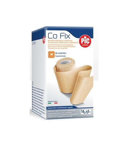PIC - Co fix - Descrizione Benda elastica coesiva compressiva indicata per una leggera compressione. Facile e veloce da applicare senza ferma benda aderisce su se stessa ma non su cute e peli. Grande resistenza: sia nelle performance di elasticità e movimento sia nella qualità dei materiali così … ...