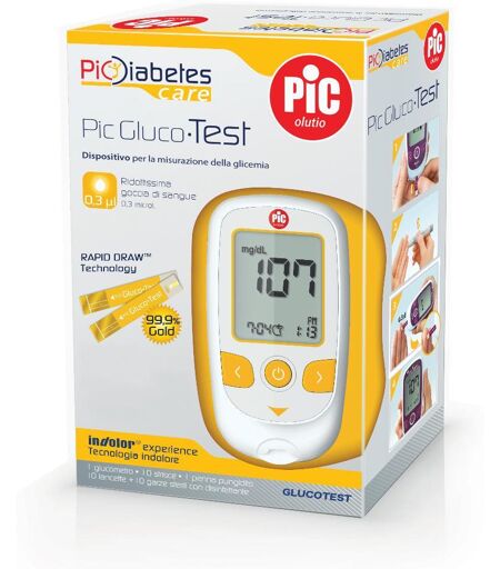 PIC - Pic Gluco•Test - Dispositivo per la misurazione della glicemia. Kit completo con glucometro, dispositivo pungidito, lancette per il prelievo e strisce reattive. Rende il controllo glicemico pratico, rapido e quasi indolore. Pratico perché consente di effettuare il controllo in 4 semplici gest… ...