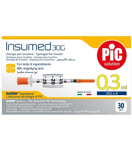 Pikdare Spa SIRINGA PER INSULINA PIC INSUMED 0,3 ML 100 UI SPAZIO ZERO AGO 30 GAUGE 8 MM 3 SACCHETTI DA 10 PEZZI