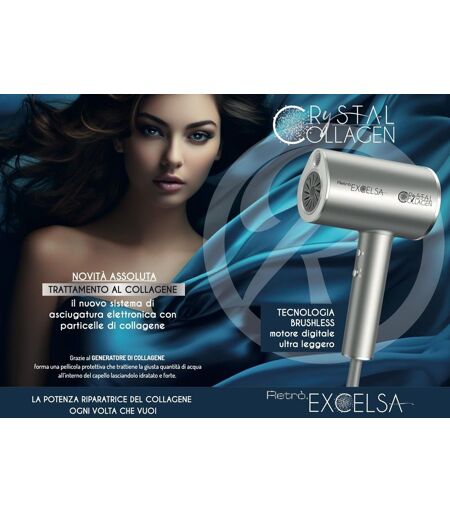 8058032350749 - Retro' - Una Novita' Assoluta Della Gamma Retro' Professional.Phon Excelsa Crystal Collagen Con Trattamento Al Collagene Durante L'Asciugatura Senza Alcun Prodotto Aggiuntivo.Grazie Al Generatore Di Collagene Forma Una Pellicola Protettiva Che Trattiene La Giusta Quantita' Di Acqua All'Interno Del Capellolasciandolo Idratato E Piu' Forte.Con Motore Digitale Con Tecnologia Brushless .Con Diffusore Incluso,Nove Velocita',Peso 70 Gr.Un Gioiello Della Tecnologia Moderna Da Non Farsi Scappare. In Piu' In Omaggio Shampoo Invidia Lt Con Argan E Maschera Kg Argan ...