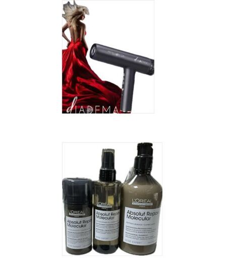 L'OREAL Phon Retro' Excelsa Diadema Con Diffusore E Due Beccucci In Omaggio Kit Absolute Repair Molecular Shampoo 500 Ml Pre Trattamento E Leave In