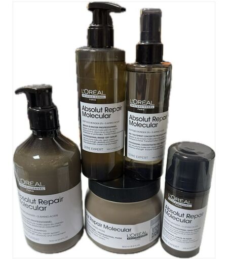 8058032355706 - L'Oreal - Kit Completo L'Oreal Absolute Repair Molecular Composto Da Shampoo 500 Ml Con Dosatore,Maschera 500 Ml Pre Trattamento Da 190 Ml,Siero Riparatore 250 Ml E Leave In 100 Ml Per Un Capello Che Rinasce Al Momento.In Piu' 9in Regalo Spazzola Piatta Original Termix ...