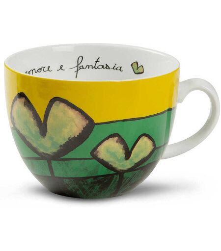 Tazza Colazione Di Egan Della Collezione Pane Amore E Fantasia. Oggetto Realizzato In Porcellana Di Colore Verde E Giallo E Multicolore. Dimensione: 8,7x16x0 Cm. La Referenza È Paf03/1v, Colore: Arancione, Azzurro, Beige, Bianco, Blu, Bordeaux, ...