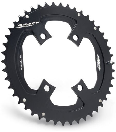 Corona Miche Graff.Caratteristiche:- Compatibile con Shimano 105 5800- 11 velocità- Alluminio 7075-T6 - Cnc ad alta rigidità- Trattamento totaleSpecifiche:- Tipo: corona- Denti: 48- BC: 96 mm ...