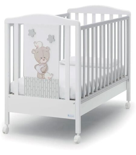 Lettino con base materasso regolabile in altezza su 2 posizioni. Doppie sponde mobili, bloccabili e con protezioni anti morso. Il lettino dispone inoltre di un capiente cassetto a 2 scomparti. Dimensioni: 71 x 130 x 102 cm. ...