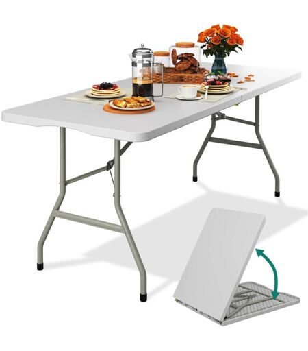 Tavolo Richiudibile a Valigia Bianco per Esterno – Plastica PP Resistente e Salvaspazio Il Tavolo Richiudibile a Valigia è la soluzione ideale per chi cerca un tavolo pratico, resistente e facile da trasportare . Realizzato in plastica polipropilene (PP) durevole e resistente agli agenti atmosferici, è perfetto per giardini, terrazzi, picnic, campeggio, fiere, mercatini e feste all’aperto . Il design pieghevole a valigia lo rende compatto e facilmente riponibile, offrendo massima praticità in ogni occasione. Caratteristiche principali Materiale di alta qualità : plastica polipropilene (PP), resistente, leggera e progettata per durare nel tempo. Dimensioni ampie : 180 x 75 x 74 cm, offre spazio comodo per più persone. Colore bianco : elegante e versatile, adatto a ogni ambiente esterno o interno. Design richiudibile a valigia : sistema pieghevole salvaspazio che rende semplice il trasporto e lo stoccaggio. Resistente agli agenti atmosferici : ideale per utilizzo prolungato all’esterno, ...