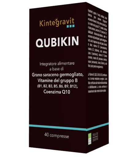 QUBIKIN Descrizione del parafarmaco Qubikin Kintegravit 40cpr - Integratore alimentare a base di grano saraceno germogliato, vitamine del gruppo B (B1, B2, B3, B5, B6, B9, B12) e coenzima Q10. Le vitamine B1, B2, B3, B5, B6 e B12 contribuiscono al normale metabolismo energetico. L'acido folico cont… ...