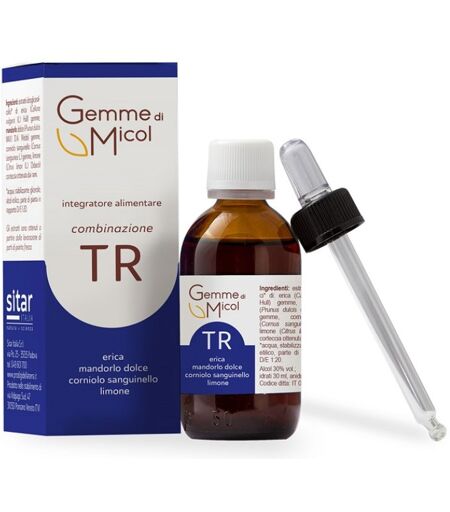 Gemme di Micol TR - Descrizione Integratore alimentare a base di estratti idrogliceralcolici di erica, mandorlo dolce, corniolo sanguinello e limone. Gli estratti sono ottenuti a partire dalla lavorazione di parti pianta fresca. Prodotto vegano. Alcol 30% vol. Idrati 30 ml. Anidri 9 ml. Ingredienti… ...